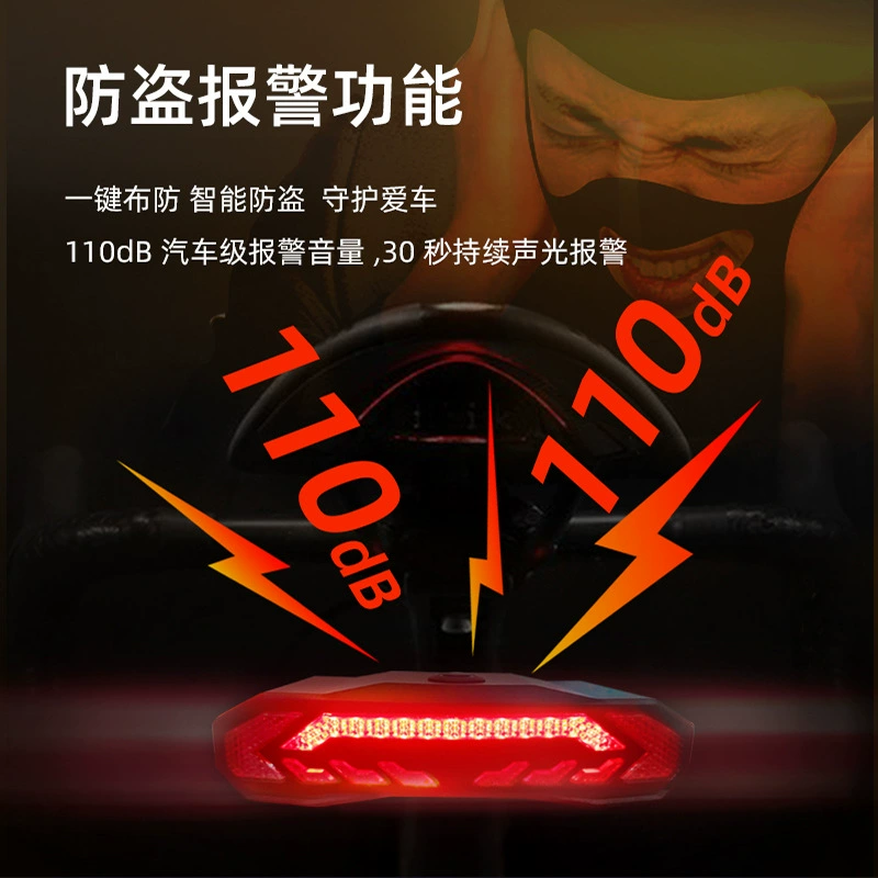 Bicycle smart brake tail light USB charging alarm outdoor night riding mountain bike steering LED tail light waterproof