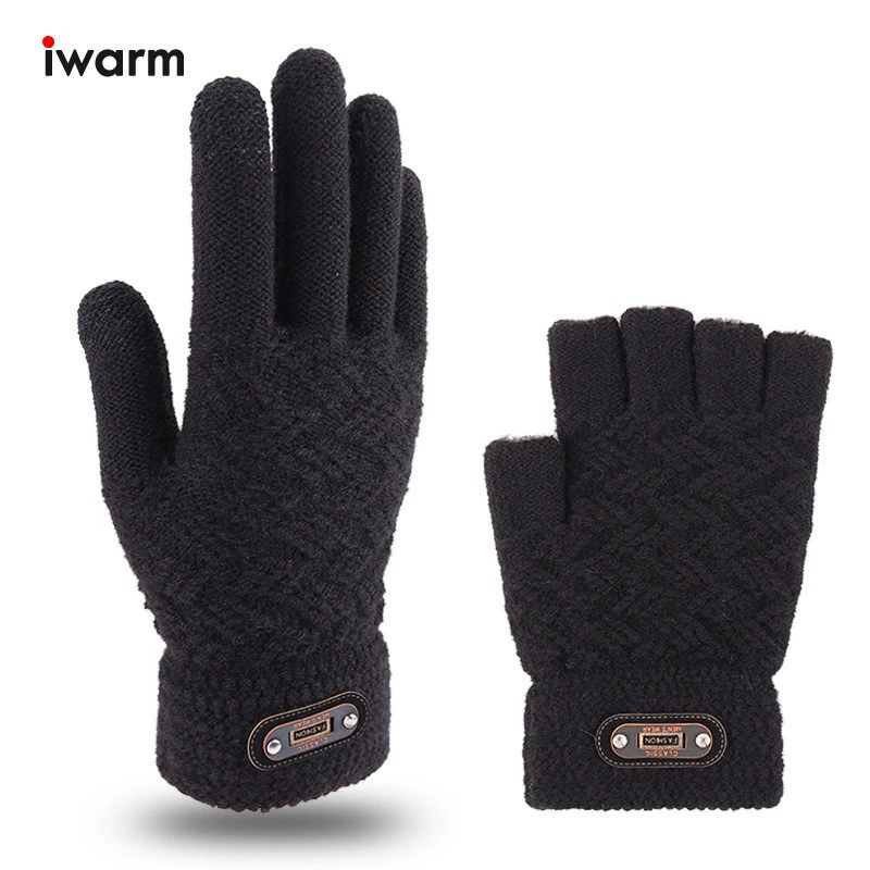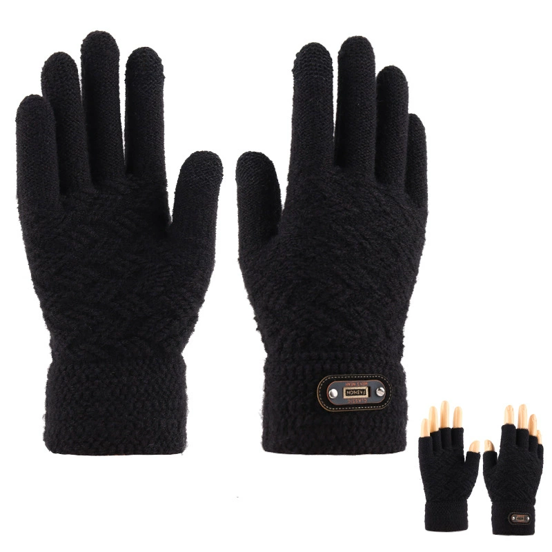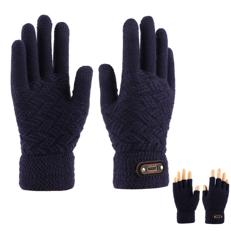 Factory clearance processing knitted touch screen gloves winter men’s full-finger Korean style velvet thickened warm half-finger gloves