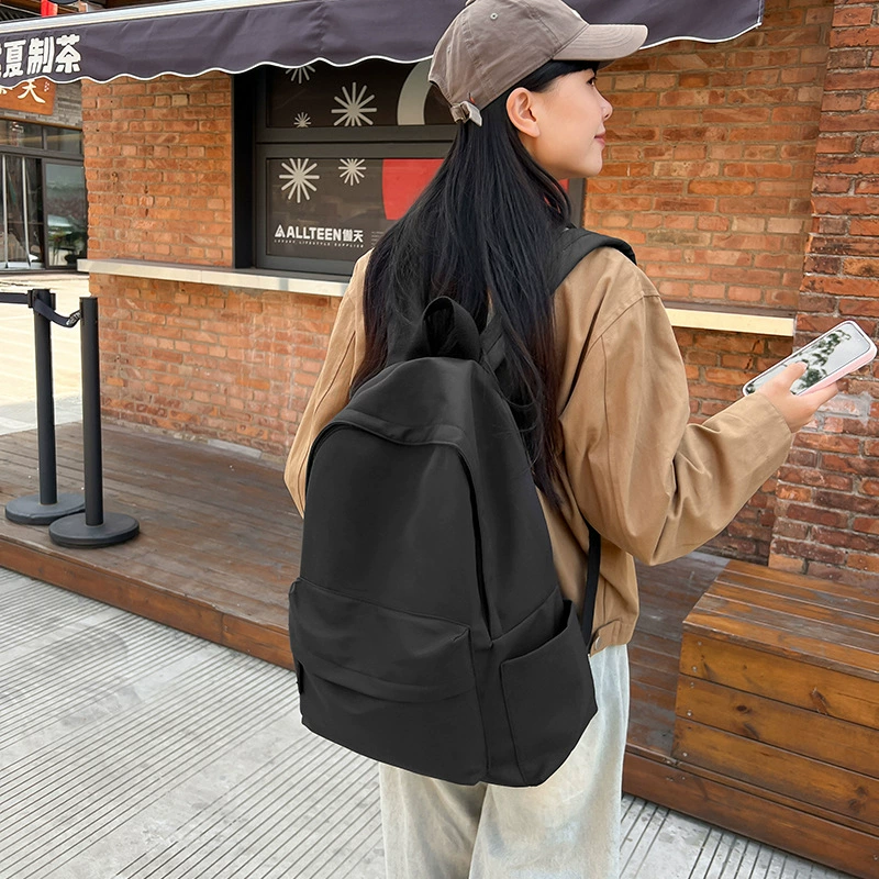 Japanese unprinted style backpack for male and female college students Korean version large capacity solid color backpack junior high school and high school student school bag