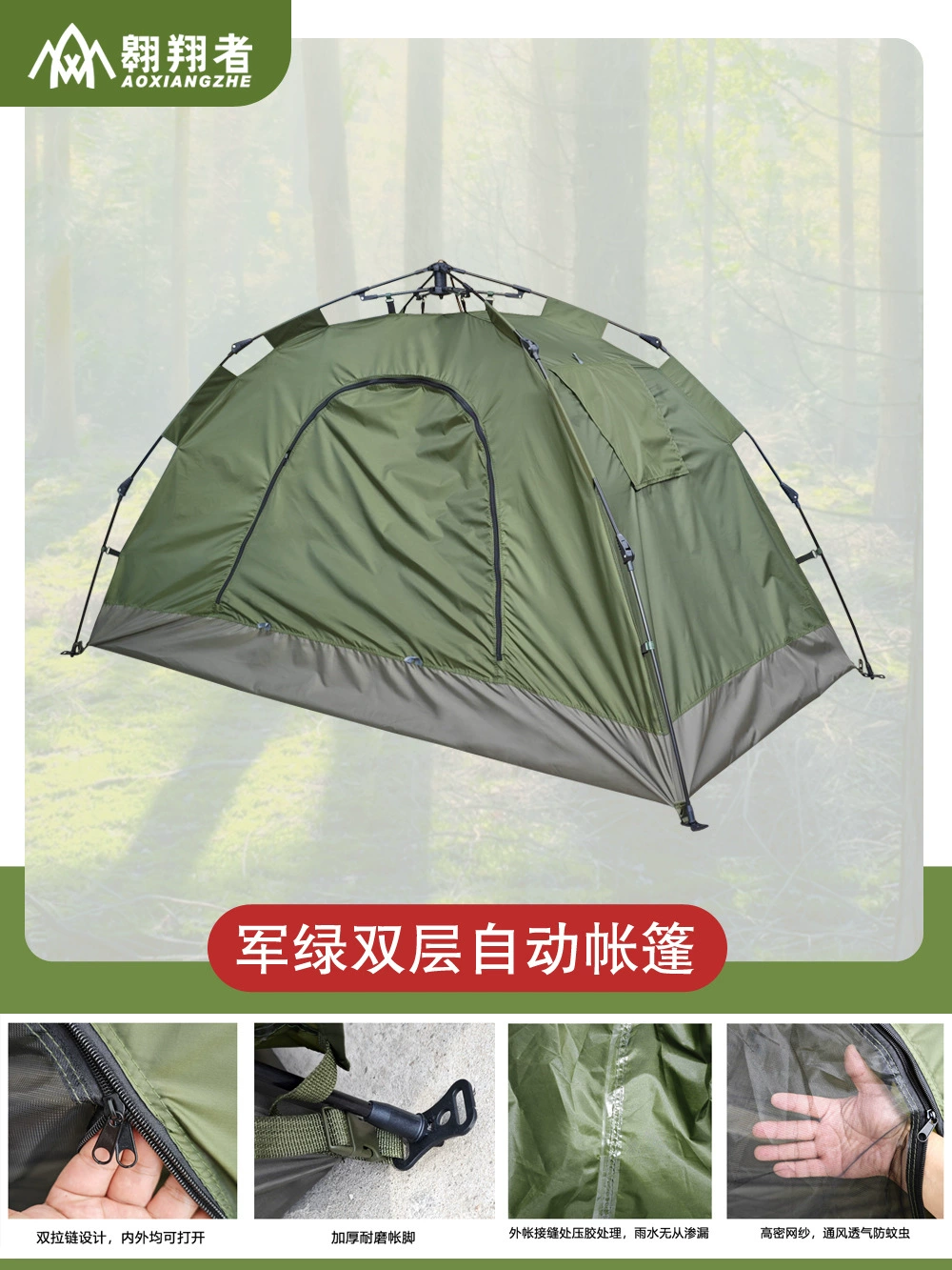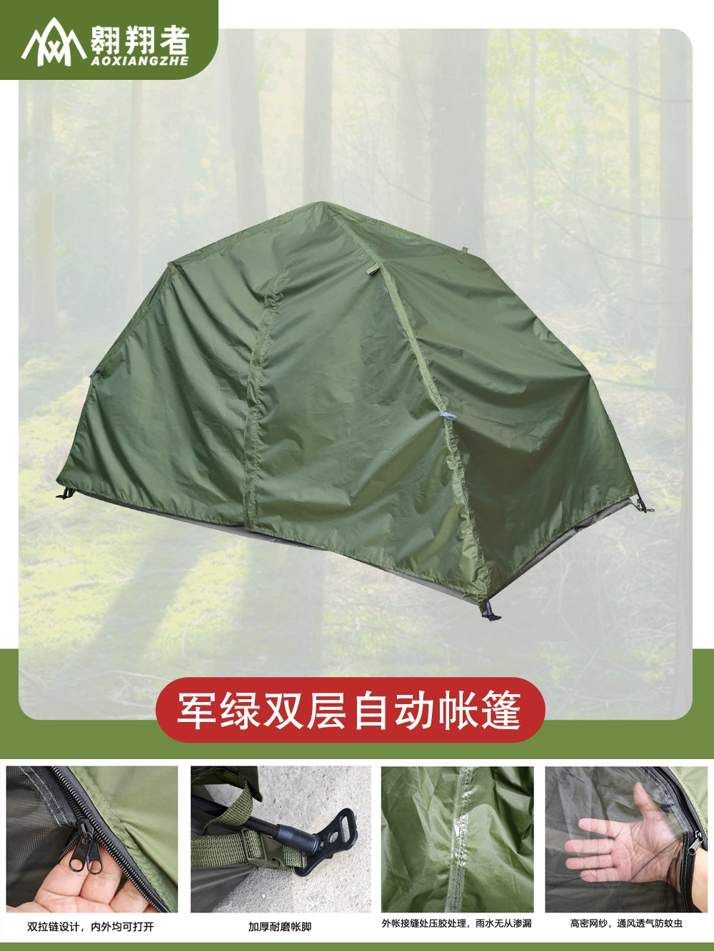 Soaring Army single-person double-layer rainproof automatic tent quick-opening outdoor camping training tent manufacturer wholesale customization
